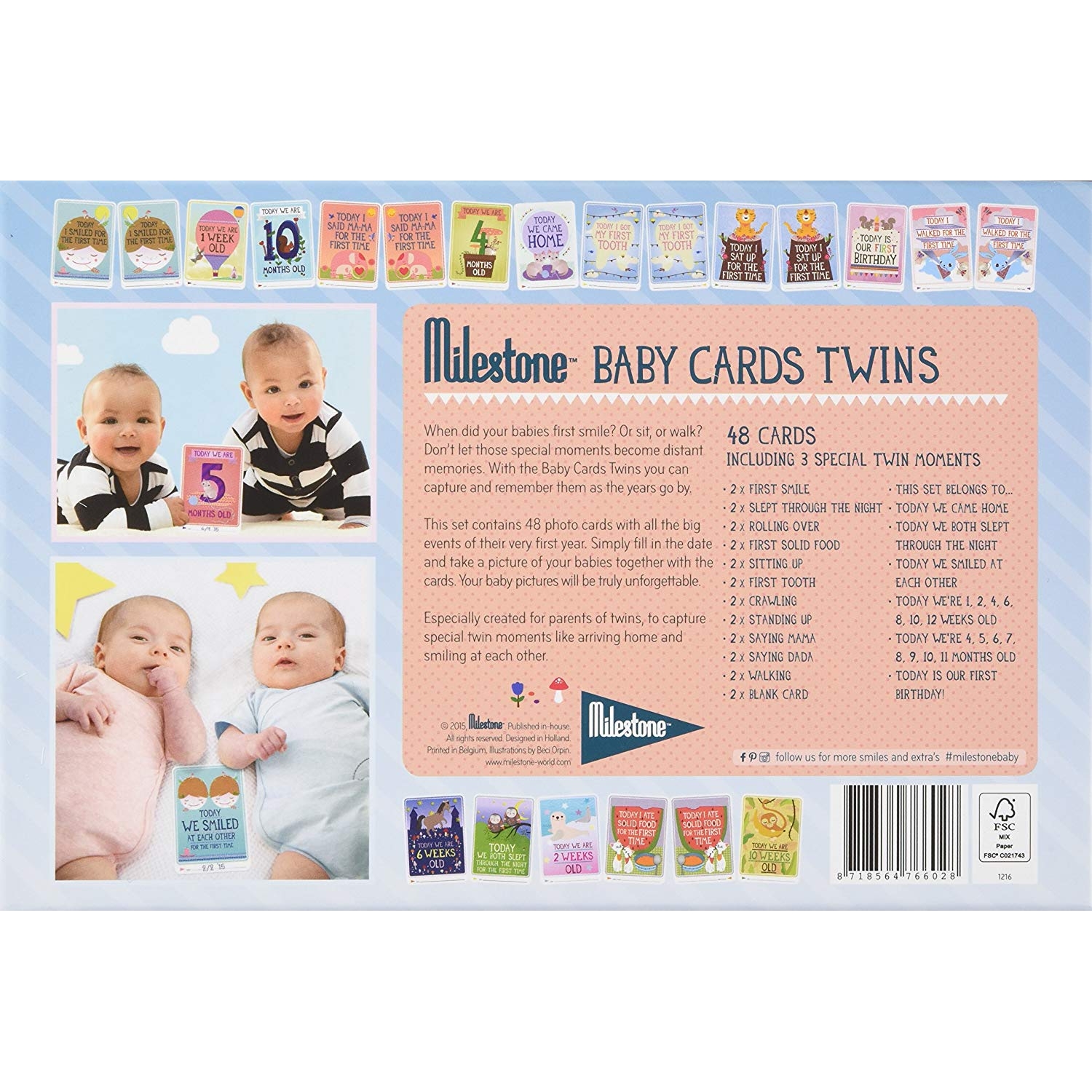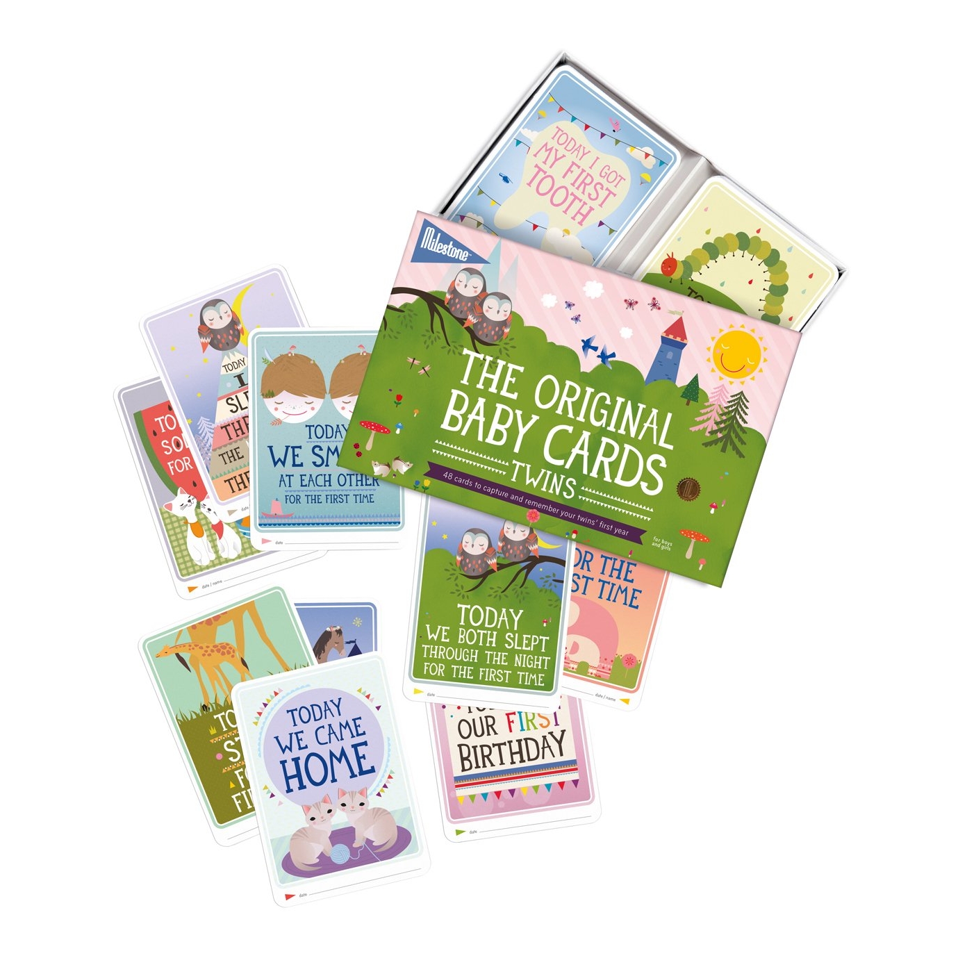 Our award winning Milestone Baby Cards are 30 photo cards that you can use to capture your baby's first year in weeks, months and memorable moments. Add a card to your baby pictures and you will never forget when your little one slept through the night, rolled over or said mama for the first time. Today Milestone Baby Cards are available in 11 languages in over 33 countries with new parents enjoying them every day.